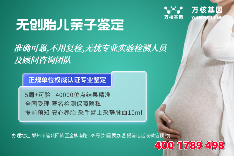 其可以为人们解决疑惑,确认血缘关系,解除心理压力,确保孩子的合法权益,因此郑州管城回族地区,越来越多的人开始关注和需要这项服务-郑州管城回族dna胎儿亲子鉴定办理地址:郑州市管城回族区金柳南路189号(如需要办理 提前电话或微信预约)-预约电话:4001789498。